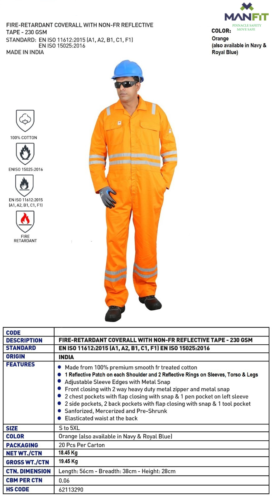 FIRE RETARDANT COVERALL WITH NON-FR REFELECTIVE TAPE